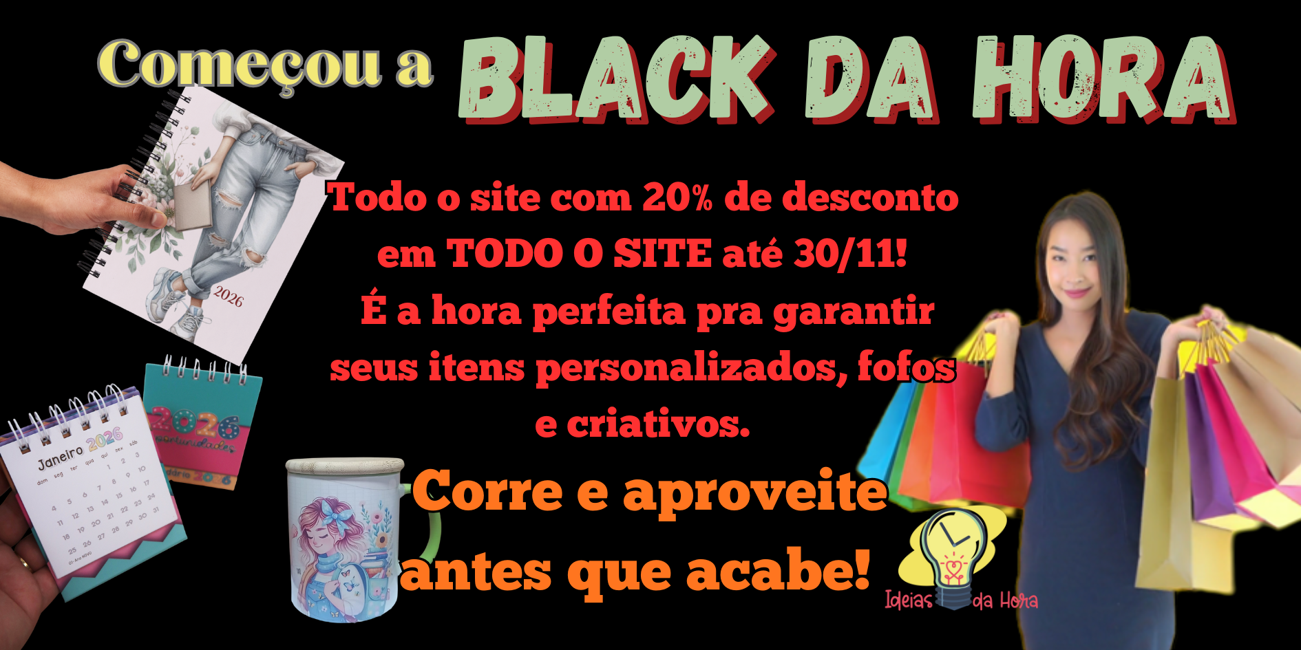 A Ideias da Hora é o lugar perfeito para encontrar presentes e papelaria personalizados. Nossa loja virtual oferece uma variedade de opções criativas e exclusivas para tornar seus presentes ainda mais especiais. Desde a simples papelaria até agendas únicas. Explore nossa coleção e deixe sua criatividade fluir!